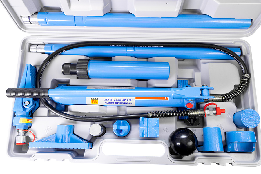 Гидравлический набор используется в автомастерских и сервисных центрах для ремонтных работ. Модель позволяет восстанавливать элементы кузова.