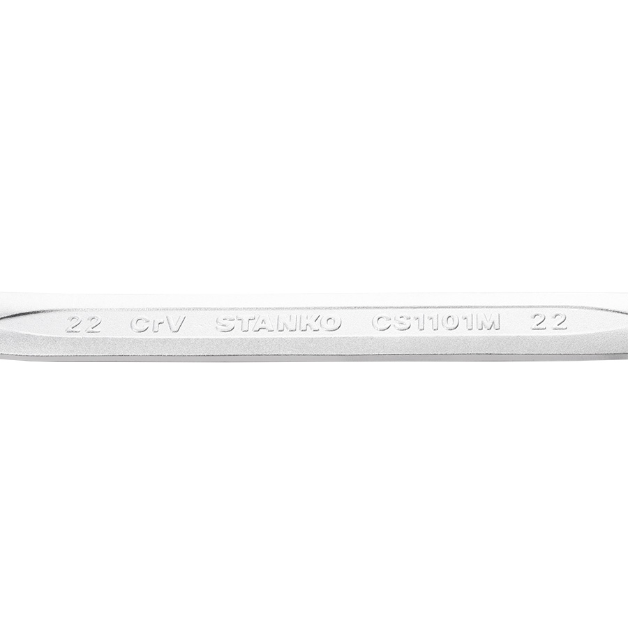 Финишная обработка Soft matt и хром никелевое покрытие комбинированного ключа обеспечивает надежную защиту от коррозии, а также надежный хват и препятствует выскальзыванию инструмента из рук. 12-гранный профиль накидной части подходит к головкам болтов и гайкам как 6-, так и 12-гранного профиля, и обеспечивает 5 градусный шаг перехвата. Специальный отгиб, в 15 градусов накидной части ключа позволит работать в местах с ограниченным доступом к крепежу и поможет подобраться к крепежу как с торца, так и с боку, в зависимости от места выполняемых работ.
