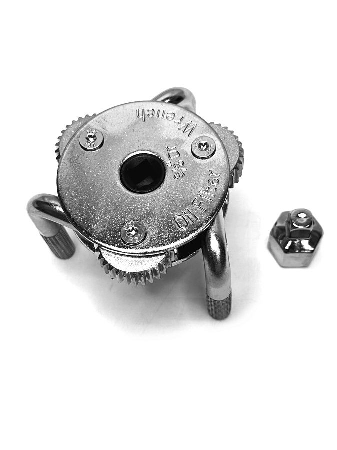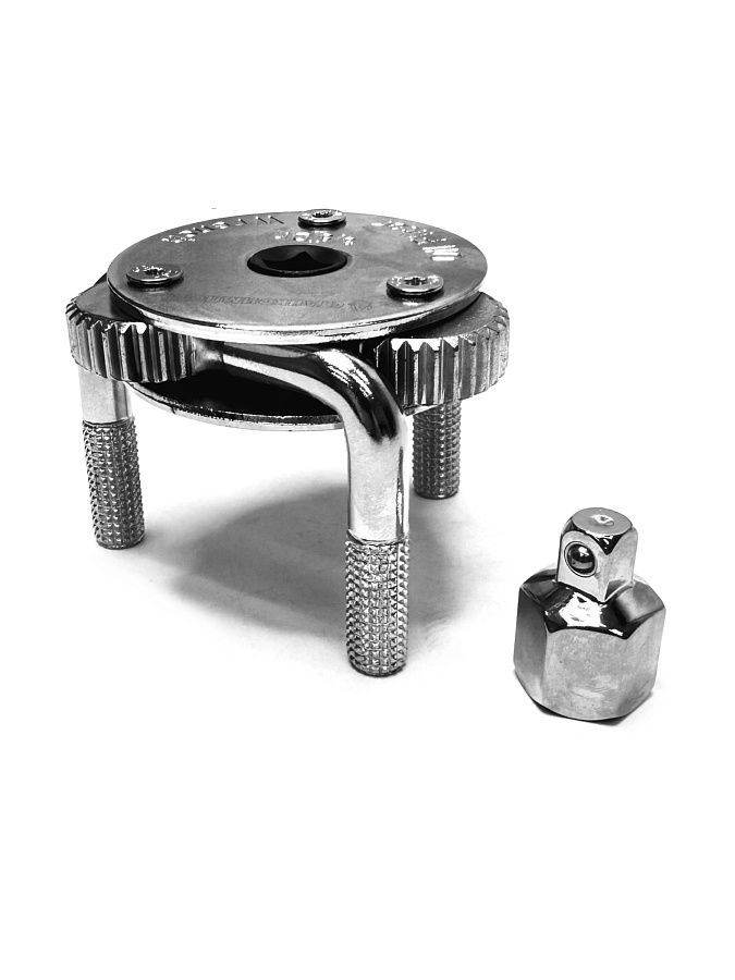 Захваты съёмника снабжены специальной накаткой, обеспечивающей надежное сцепление с корпусом фильтра и позволяет прикладывать большие усилия при откручивании прикипевших фильтров. Конструкция съемника рассчитана на работу с приводами размера 3/8 дюйма, использование такого размера привода позволяет комфортно работать в условиях ограниченного пространства. Так же в комплекте поставки присутствует переходник 1/2 – 3/8 дюйма.