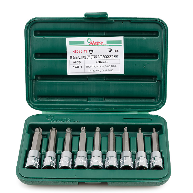 46025-49 набор головок TORX с отвер. L=100мм на 1/2" 9 пр. в кейсе