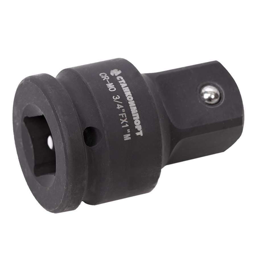 “Мама” адаптера имеет размер 3/4" дюймf, а “папа” - 1" дюйм, что позволяет использовать его с различными типами торцевых головок и инструментов.