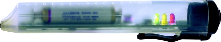 Нажмите переключатель, чтобы включить - зеленый светодиод загорится, показывая, что батарея в порядке (если загорится красный светодиод замените батарею).