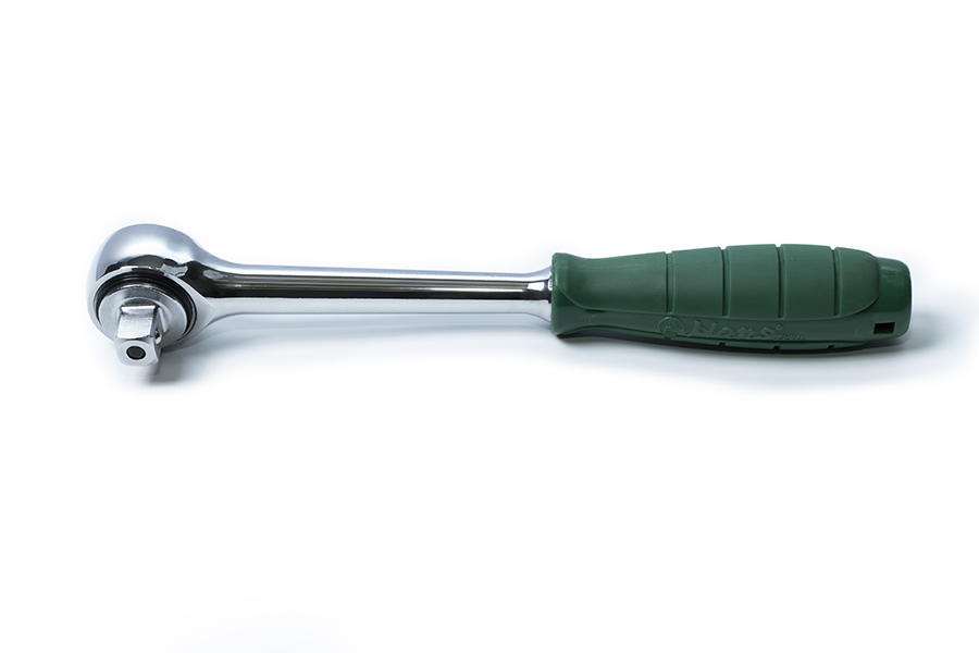 Трещотка с храповым механизмом и круглой головкой отличается простотой и удобством в применении. Трещоточный механизм ключа позволит работать им, не отрывая от закручиваемой детали. Резиновая накладка на ручке не позволяет инструменту скользить. Имеет кнопку быстрого сброса.