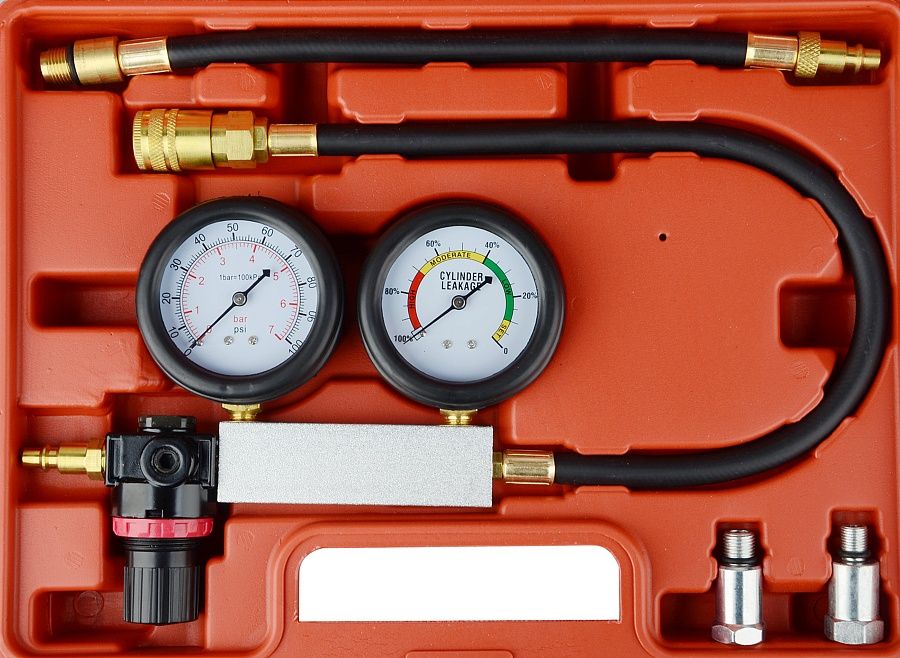 Представляет собой специальное приспособление с  двумя манометрами при помощи которого можно выявить целый ряд таки неисправностей как, плотность прилегания клапанов, целостность прокладки головки блока цилиндров, выявить трещины в стенках цилиндров, проверить плотность прилегания поршневых колец двигателе внутреннего сгорания.